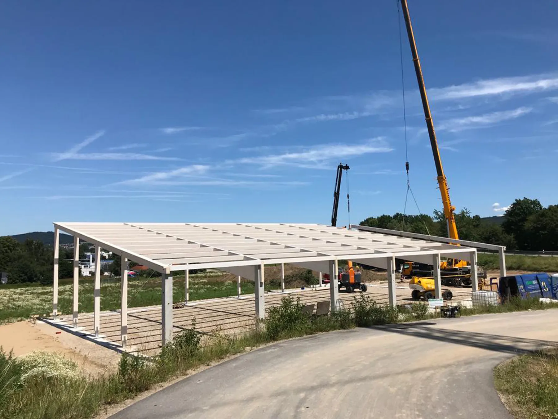 Geneigte Dachkonstruktionen speziell auf die gewünschte Anlagengröße zugeschnitten und konstruiert.